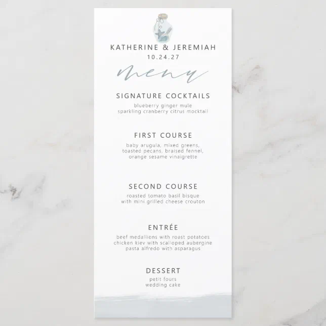 Modern Elegant Nautical Seashell Script Menu | Zazzle