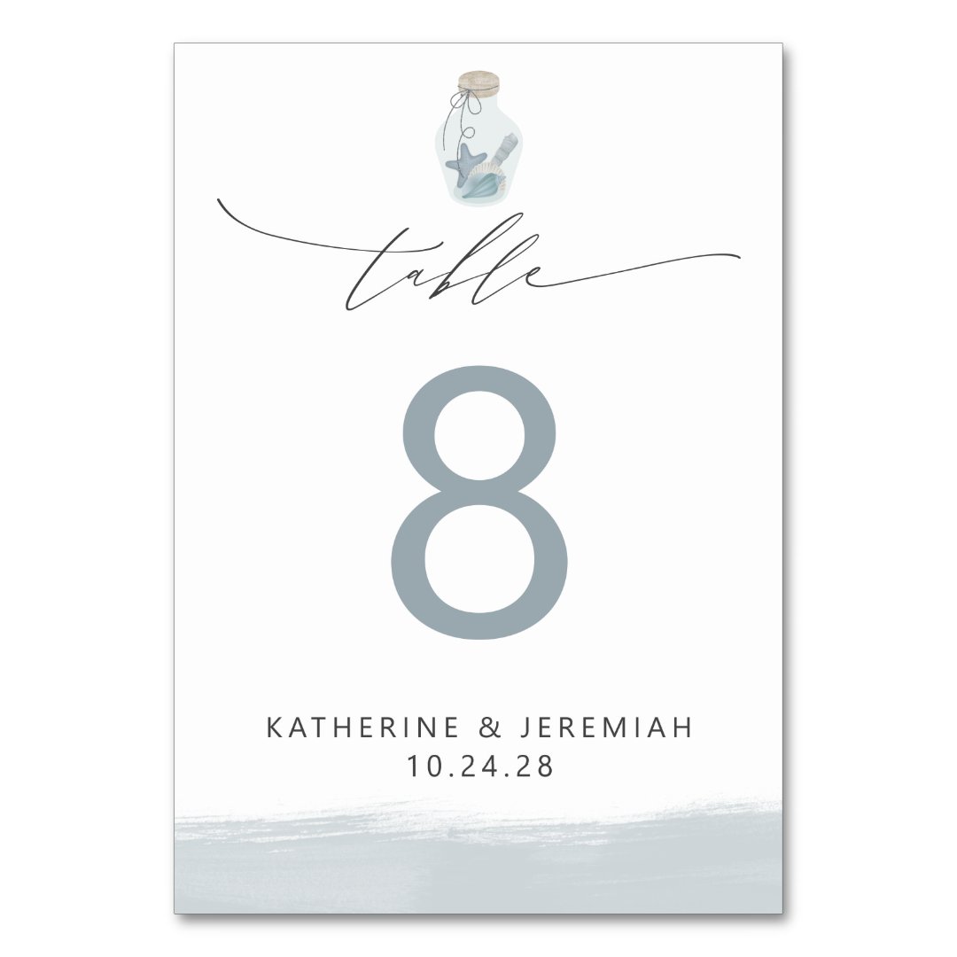 Modern Elegant Nautical Seashell Script Wedding Table Number | Zazzle