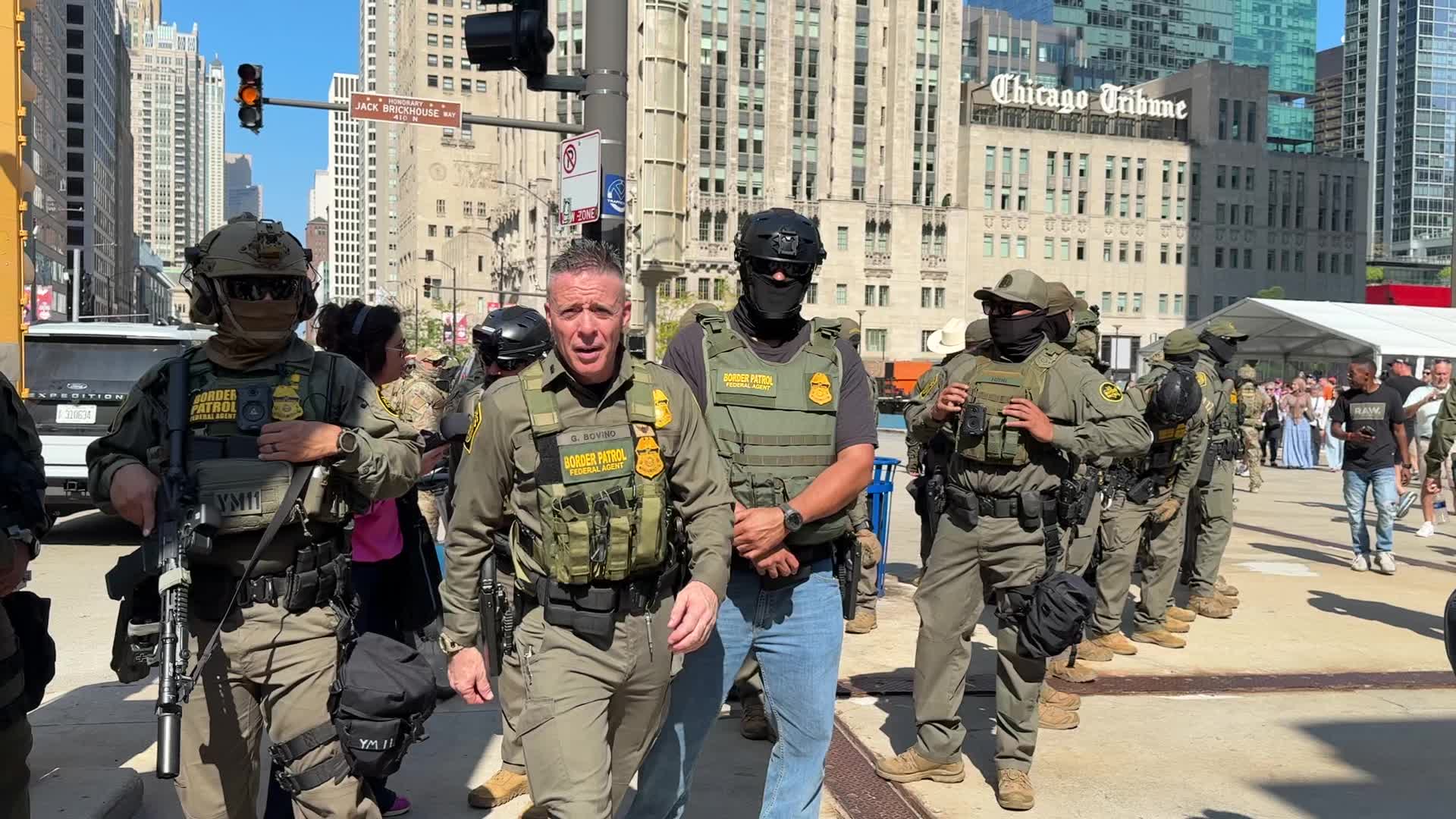 Border Patrol stroll downtown Chicago