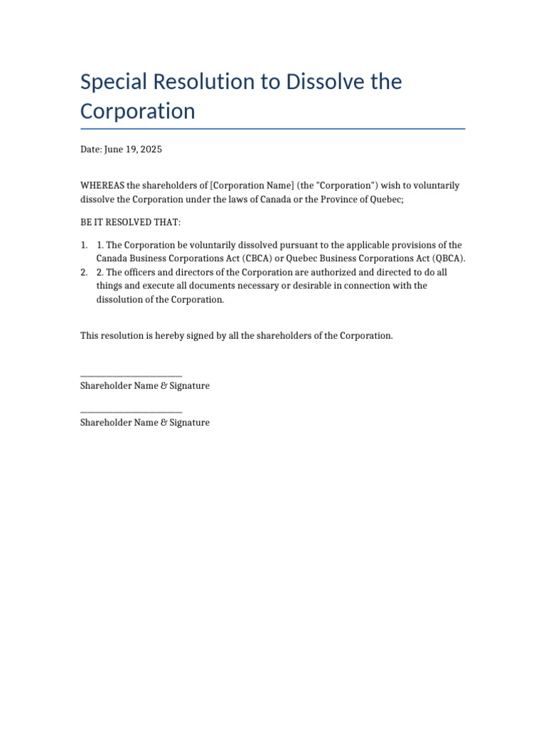Resolution To Dissolve Corporation | PDF