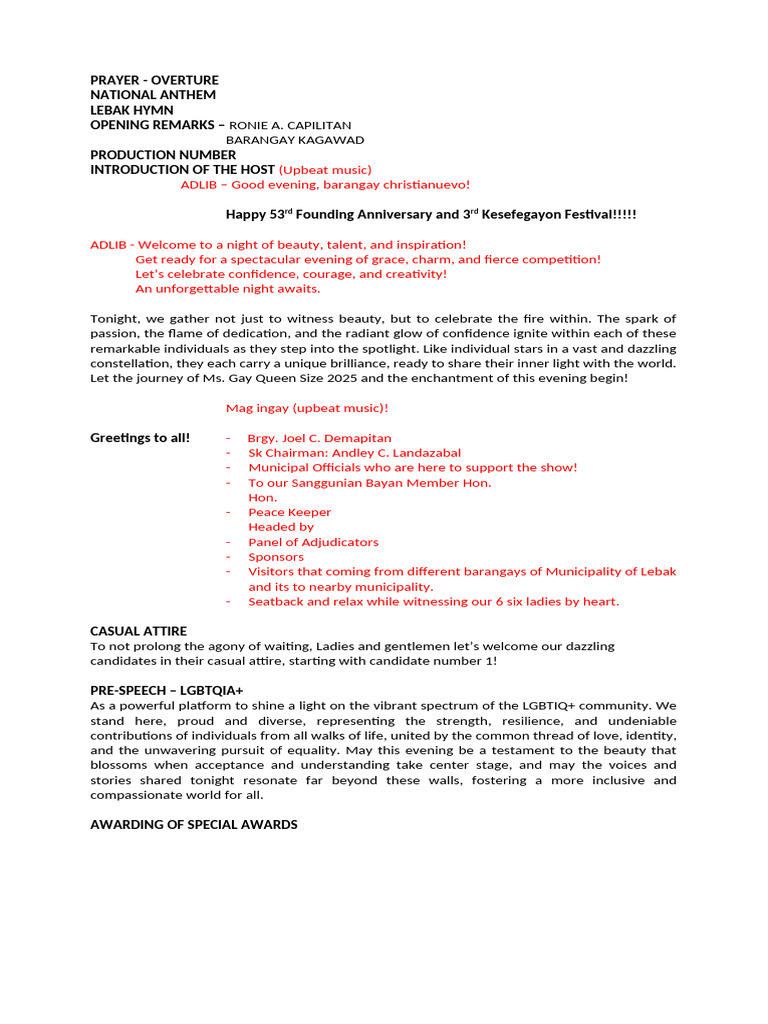 Pageant Script for Male Individual Host or Emcee | Competition ...