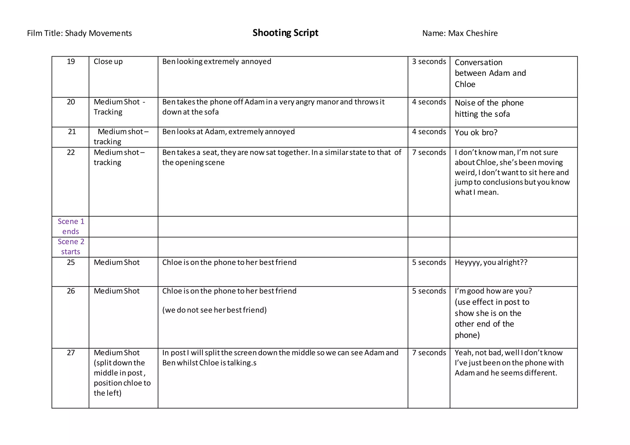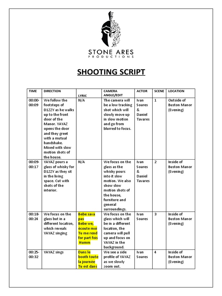 Shooting Script Template | PDF