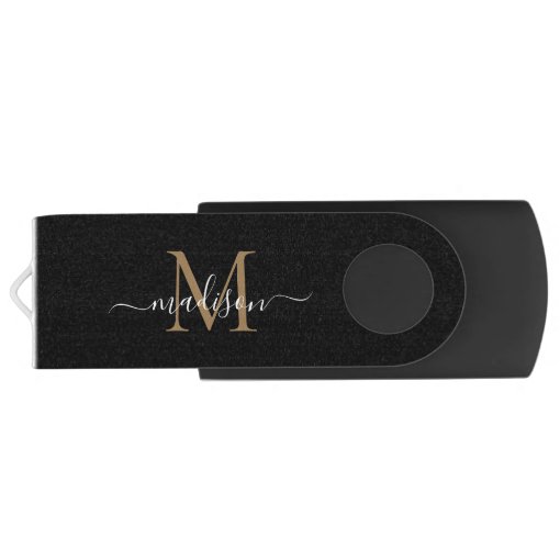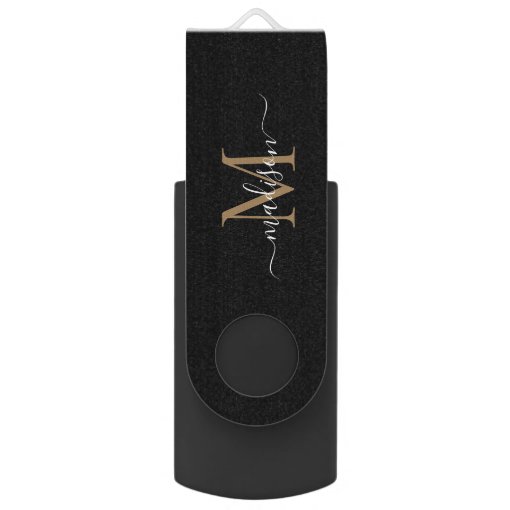 Simple Black Gold Monogram Elegant Girly Script Flash Drive | Zazzle.com