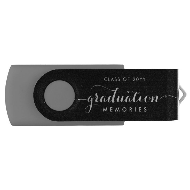 Simple Graduation Photo Black White Girly Script Flash Drive | Zazzle