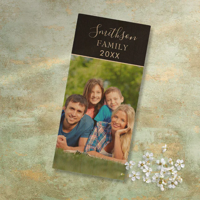 Simple Script Family Photo Wood Flash Drive | Zazzle