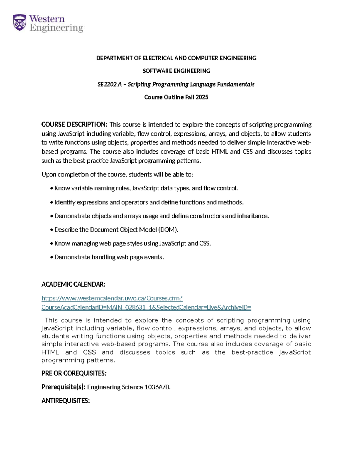 SE2202A Scripting Programming Language Fundamentals Course Outline Fall ...