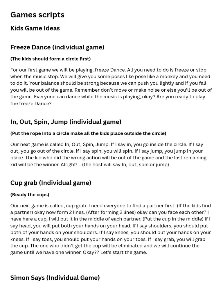 Fun Kids Game Scripts for Free | PDF