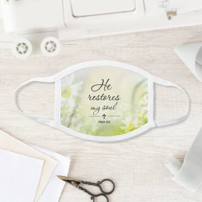 Psalm 23:3 He Restores My Soul Bible Verse Face Mask | Zazzle