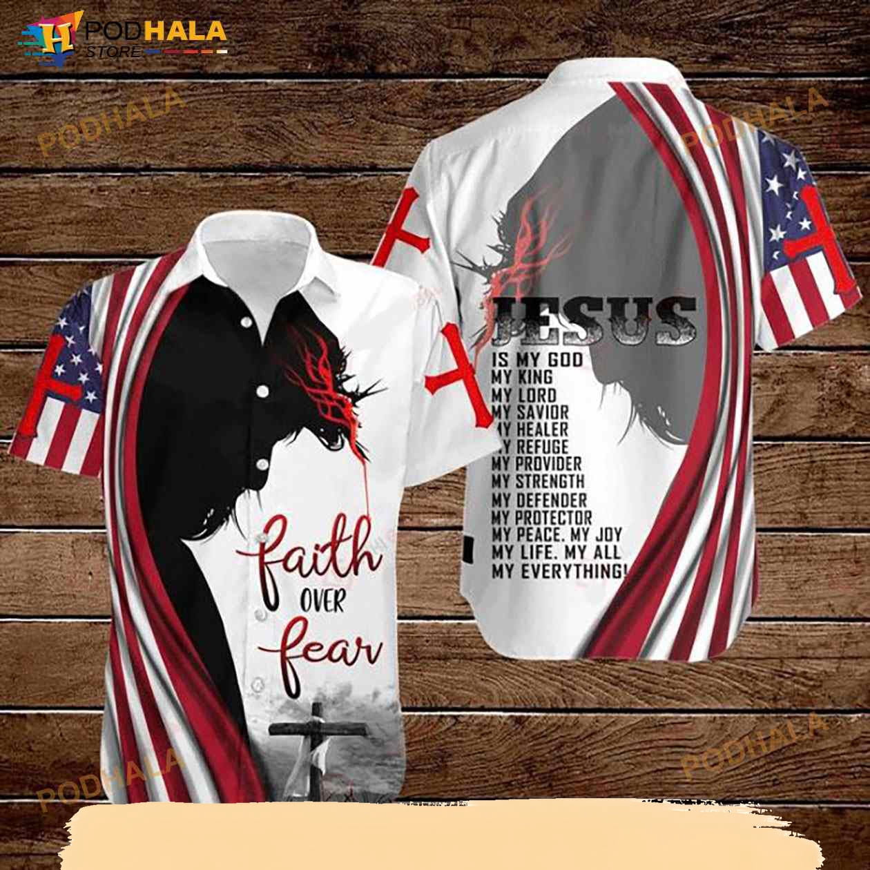 Cross Jesus Bible America Flag Faith Over Fear Jesus Is My God My King ...