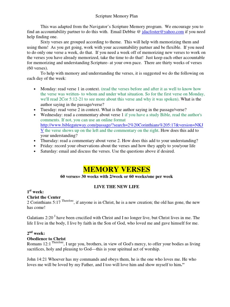 Scripture Memory Plan With Verses | PDF | Eternal Life (Christianity ...