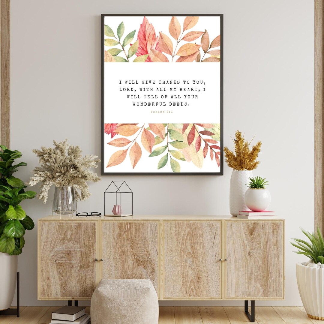 Psalm 9 1 Give Thanks Bible Verse Wall Art, Scripture Print, Fall ...