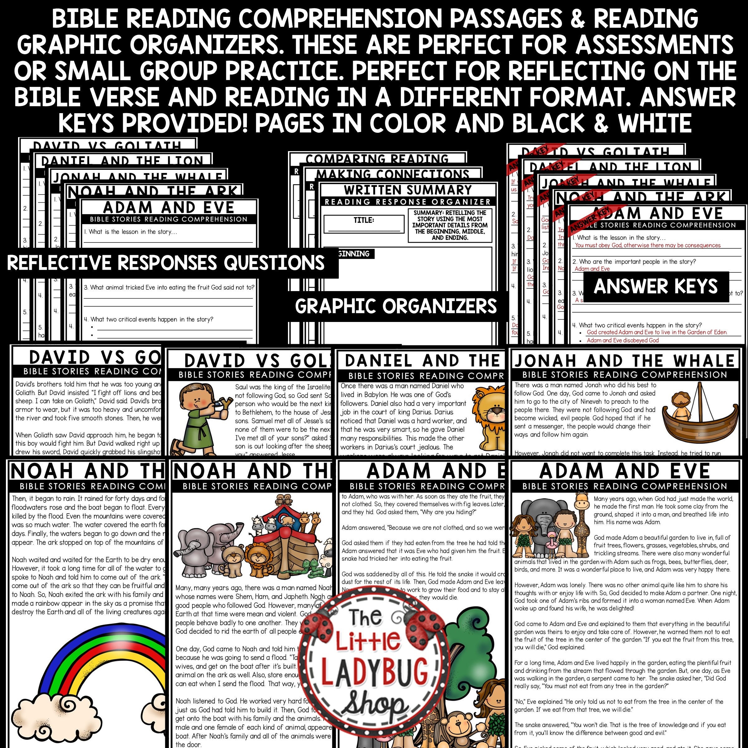 Bible Stories Reading Comprehension Worksheets Bundle by Mind Spark ...