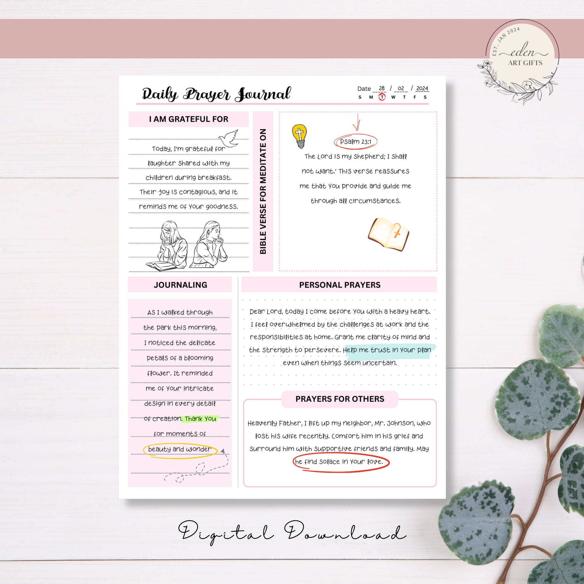 Daily Prayer Journal Printable Template Gratitude Journal God Digital ...
