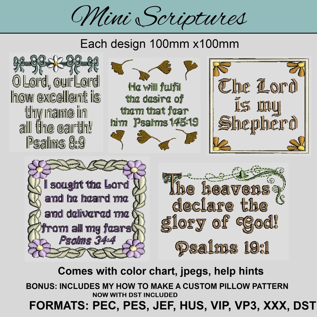 Mini Scriptures No2, 5 Beautiful Machine Embroidery Designs for 4x4 ...