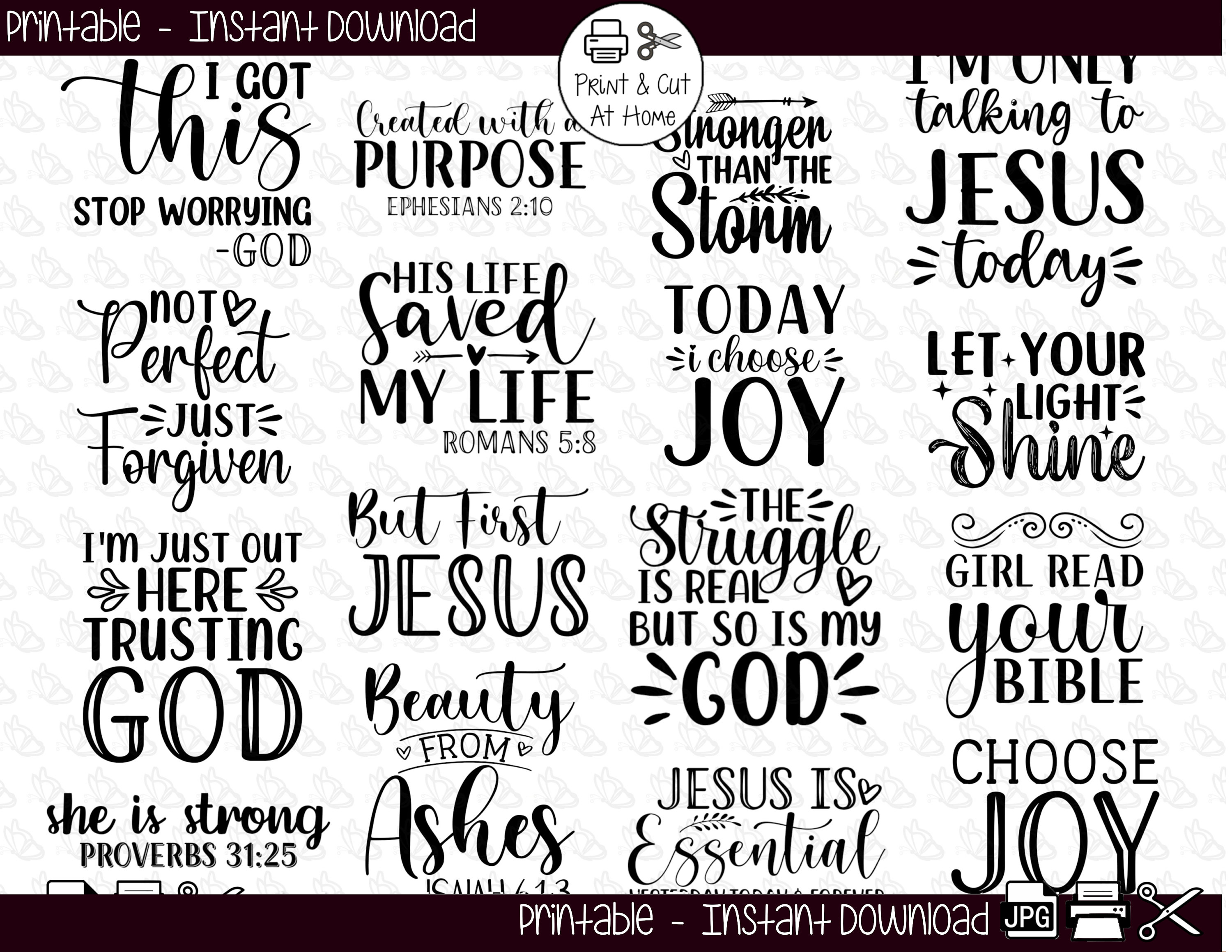 Scripture Bible Verse Printable Stickers, Cricut Silhouette Print & Cut ...