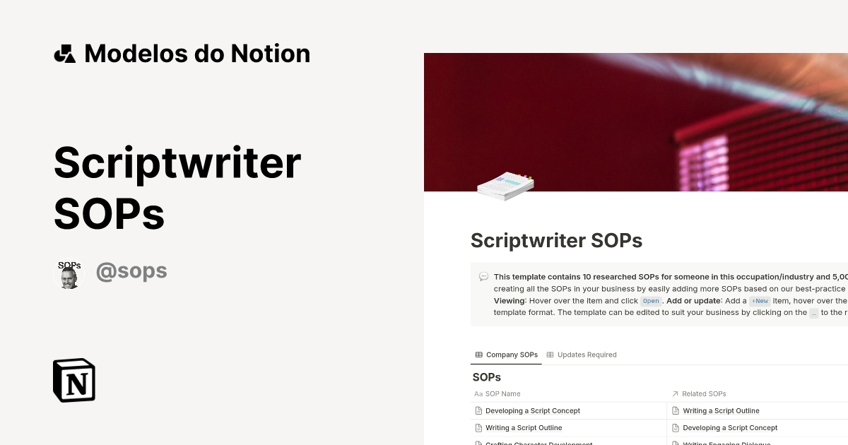 Scriptwriter SOPs Modelo por SOPs | Marketplace do Notion