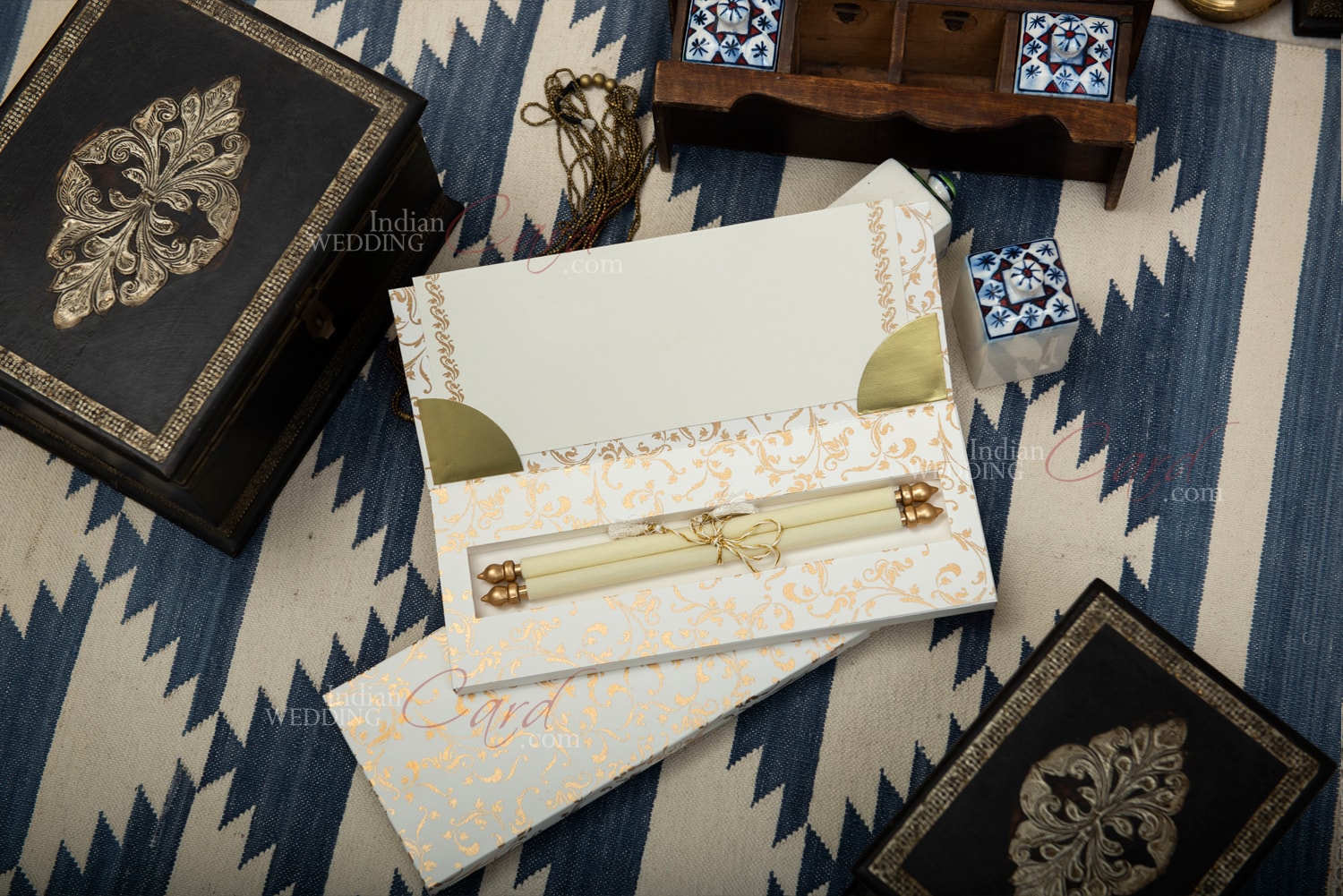 Royal Scroll Invitation Cards with Fiber Moulded Plastic Boxes & Cover ...