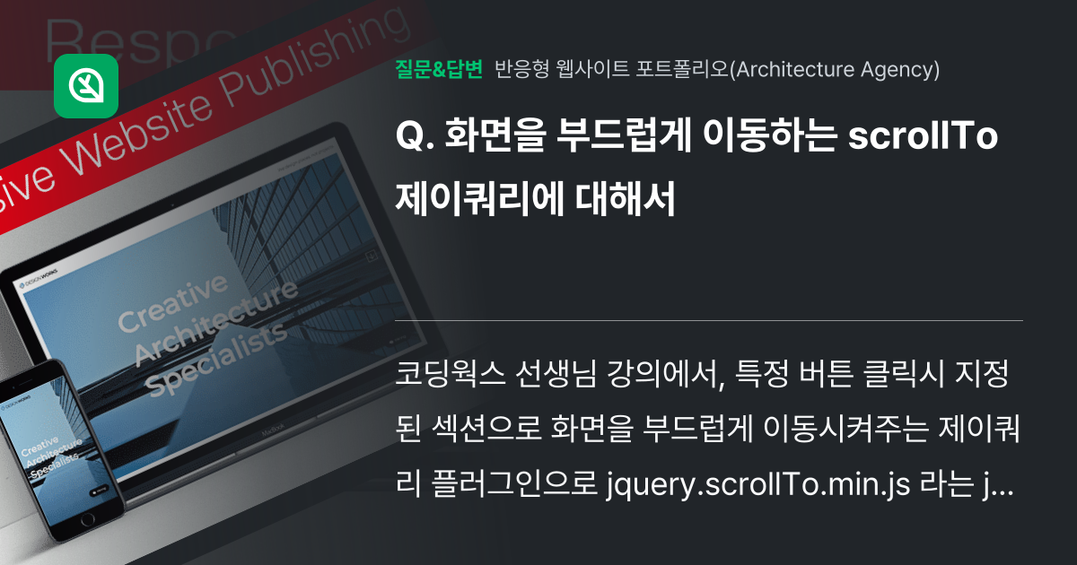 화면을 부드럽게 이동하는 scrollTo 제이쿼리에 대해서 - 인프런 | 커뮤니티 질문&답변