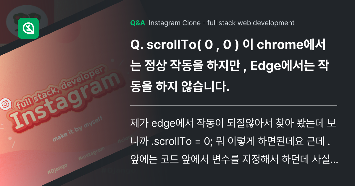 scrollTo( 0 , 0 ) 이 chrome에서... - Inflearn | Community Q&A