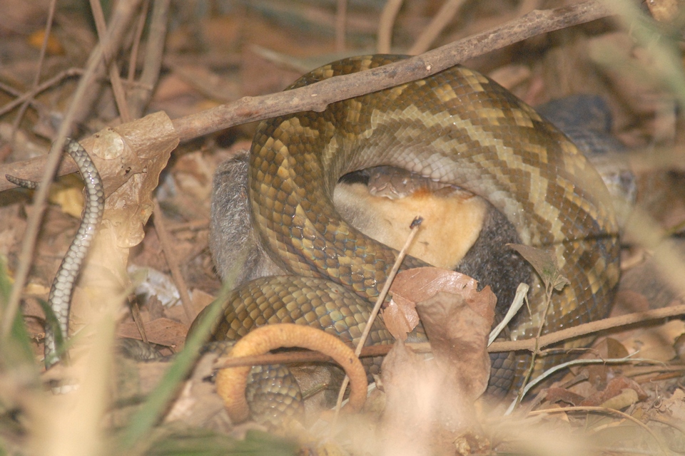 17ft scrub Python eating a kangaroo at back of our caravan in far north ...