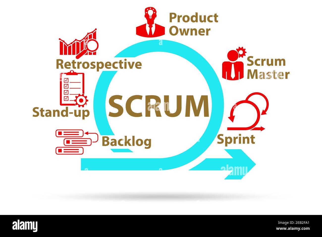 Scrum method illustration with the key components Stock Photo - Alamy