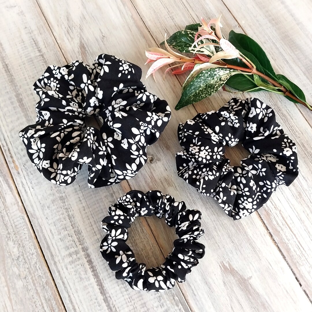 Floral Hair Scrunchies Cute Black & White Ditsy Floral Slim, Petite ...