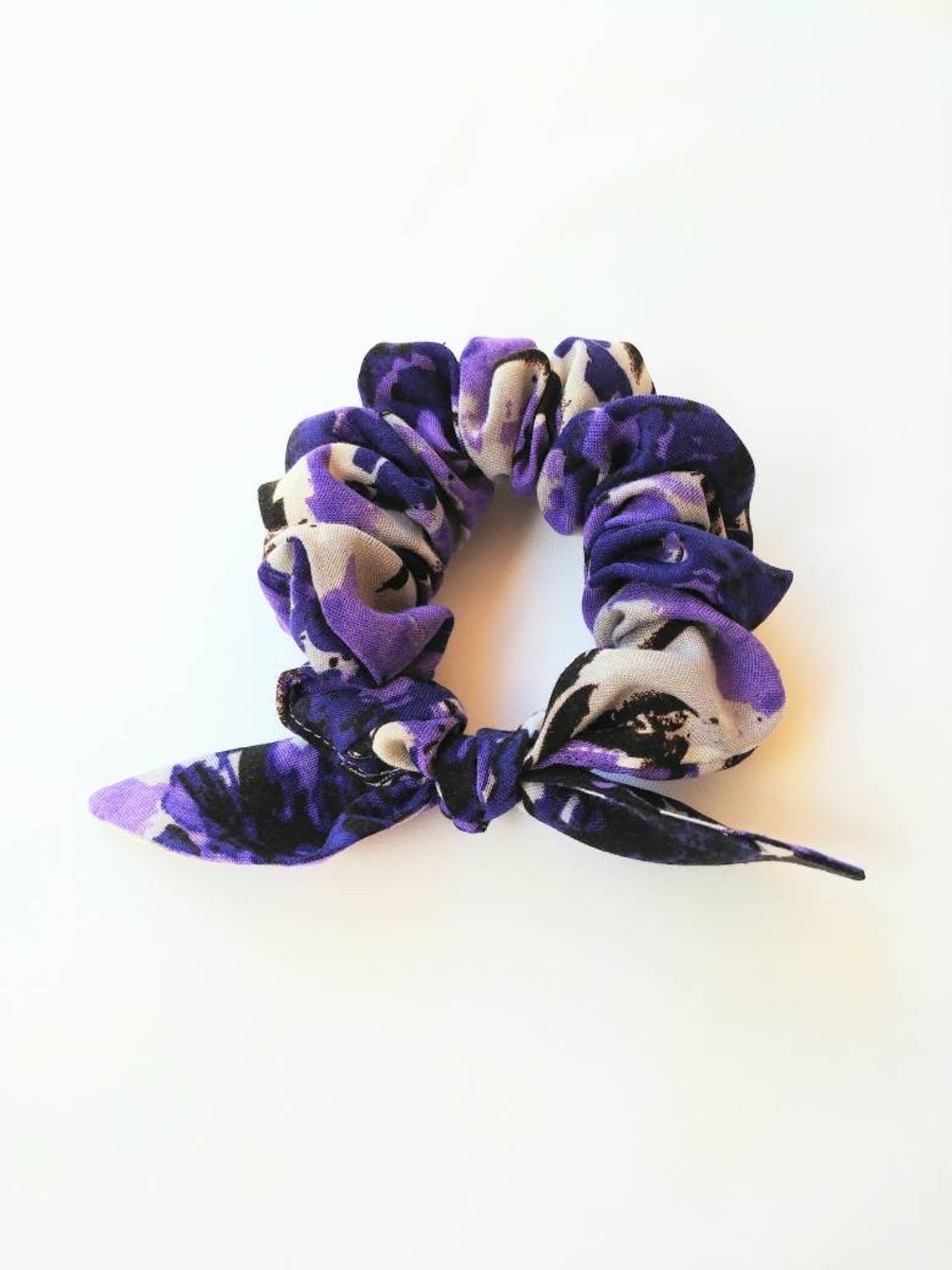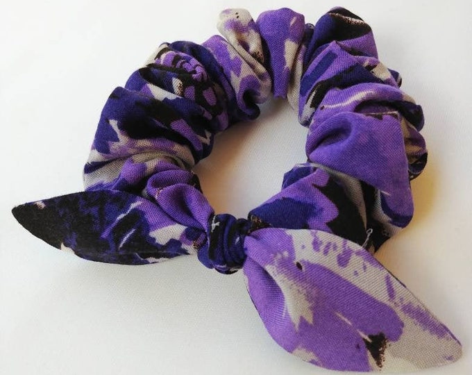 Purple Rayon Challis Bunny Ear Scrunchie, Hair Scarf Scrunchie, Hair ...