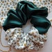 Two Tones Scrunchie Satin Rayon, Green, Emerald Scrunchie, White Floral ...
