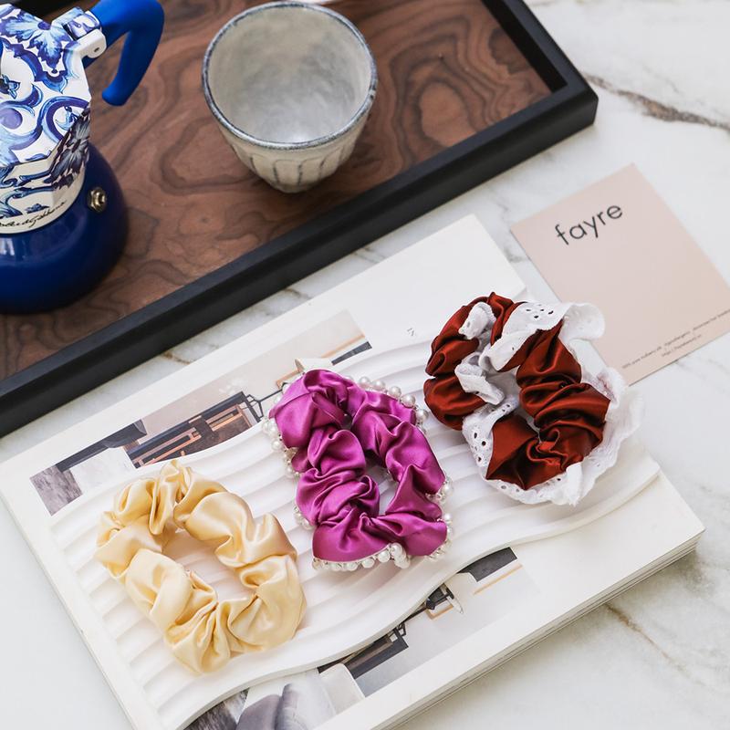 [Heatless styling tool] Fayre Silk Scrunchie In Lace & Pearl Set ...