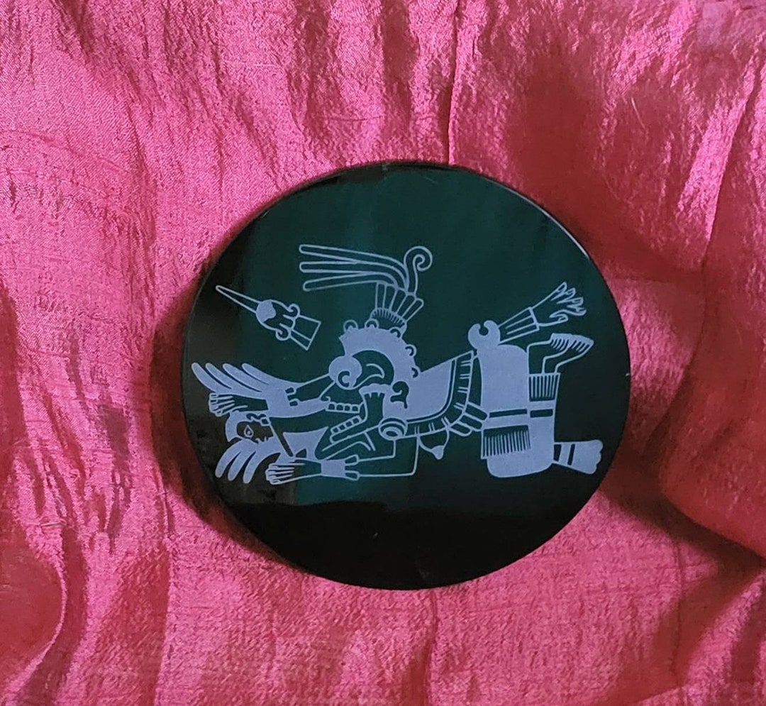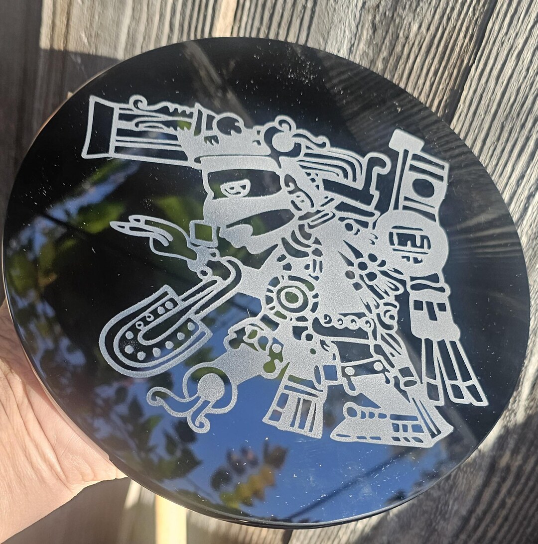 Tezcatlipoca ~ Obsidian Stone Engraved Disc ~ Scrying Disc - Etsy