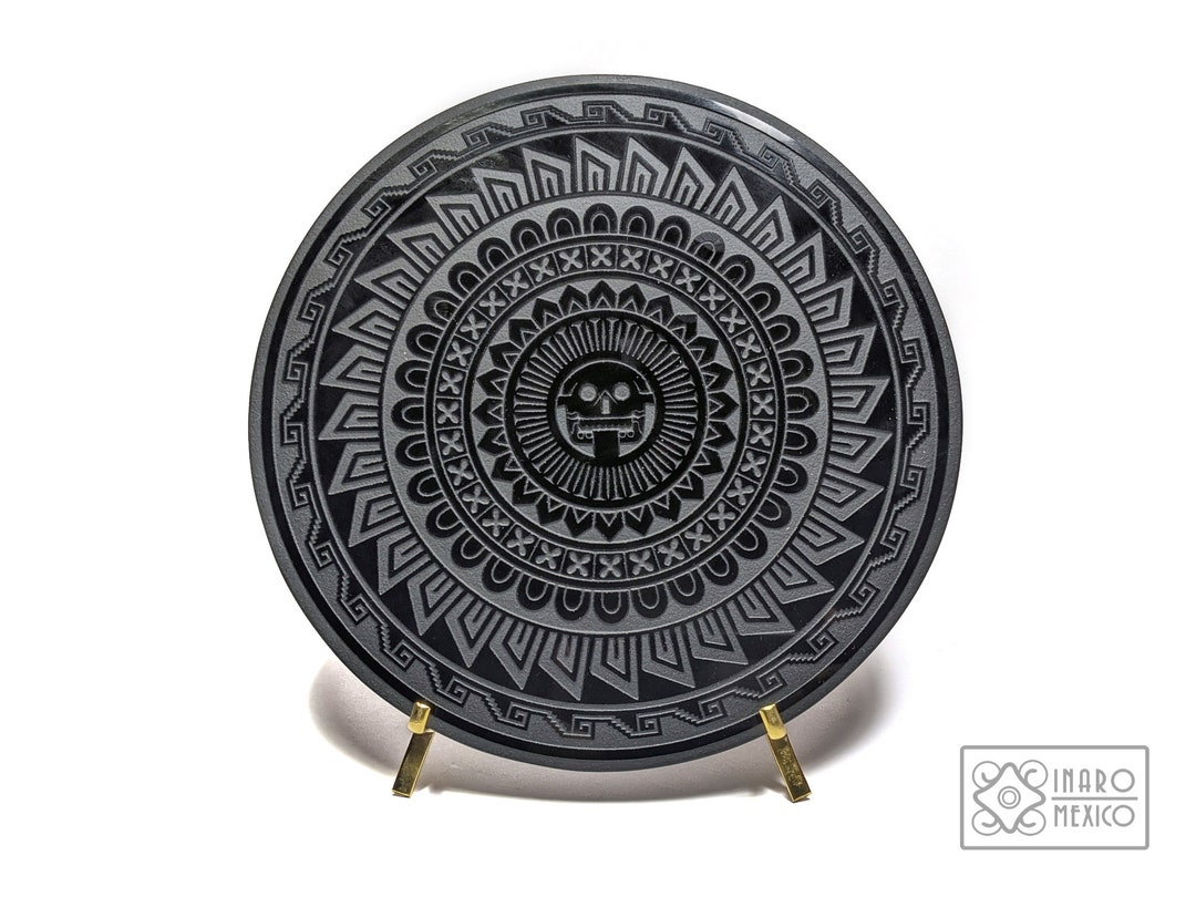 Black Obsidian Scrying Mirror: Aztec Mictlantecuhtli Solar Disc ...