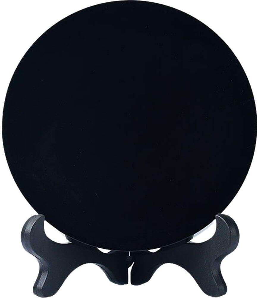 FOMIYES Black Obsidian Scrying Mirror Natural Obsidian Circle Disc with ...