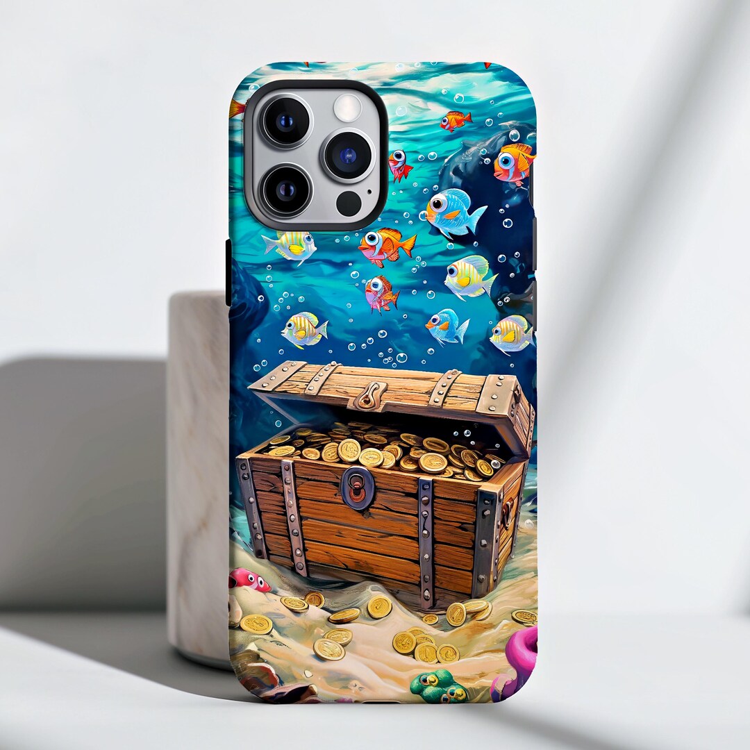 Cartoon Treasure Chest Fish Phone Case for iPhone 13 14 15 iPhone 16 ...