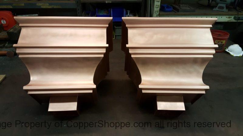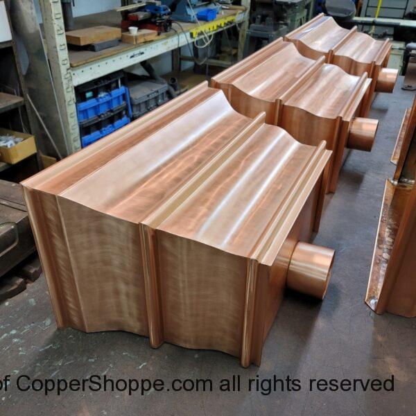 Custom copper scupper boxes with outlets