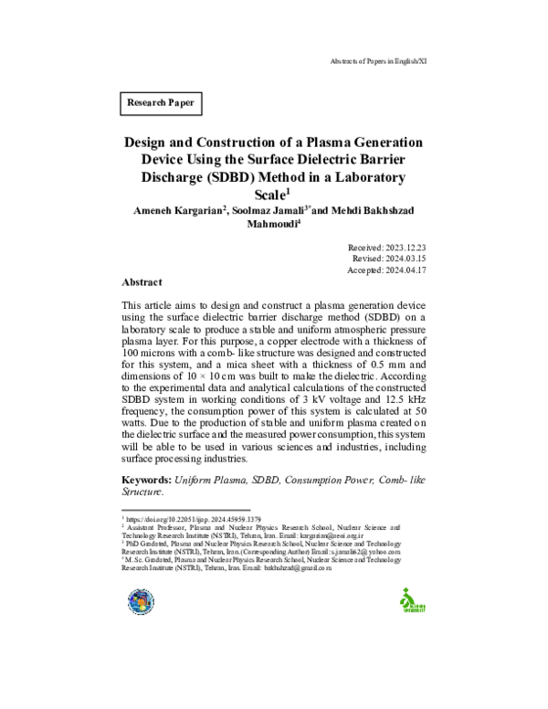 (PDF) Design and Construction of a Plasma Generation Device Using the ...