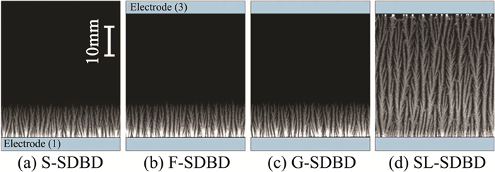 Images of the SDBD and SLDBD with three-electrode geometry under ...