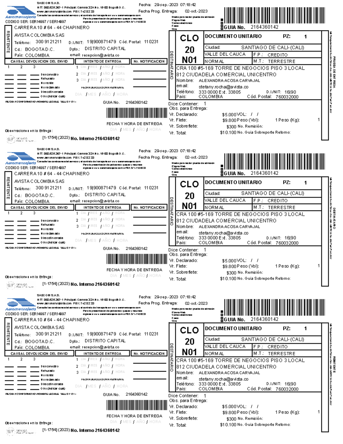 2164360142 - vdsb sdfb debhegtbherbh - AVISTA COLOMBIA SAS CARRERA 10 ...