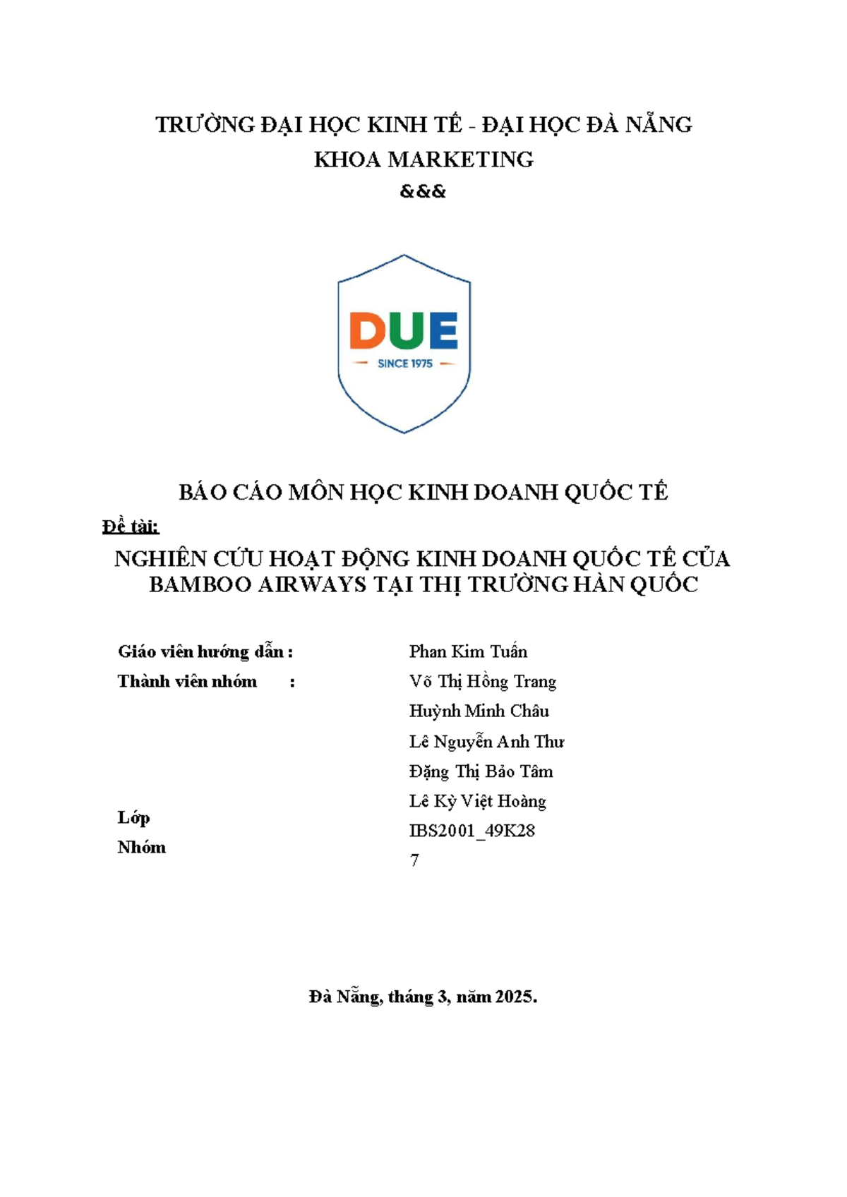BÁO-CÁO-KDQT-1 - sdfb - TRƯỜNG ĐẠI HỌC KINH TẾ - ĐẠI HỌC ĐÀ NẴNG KHOA ...
