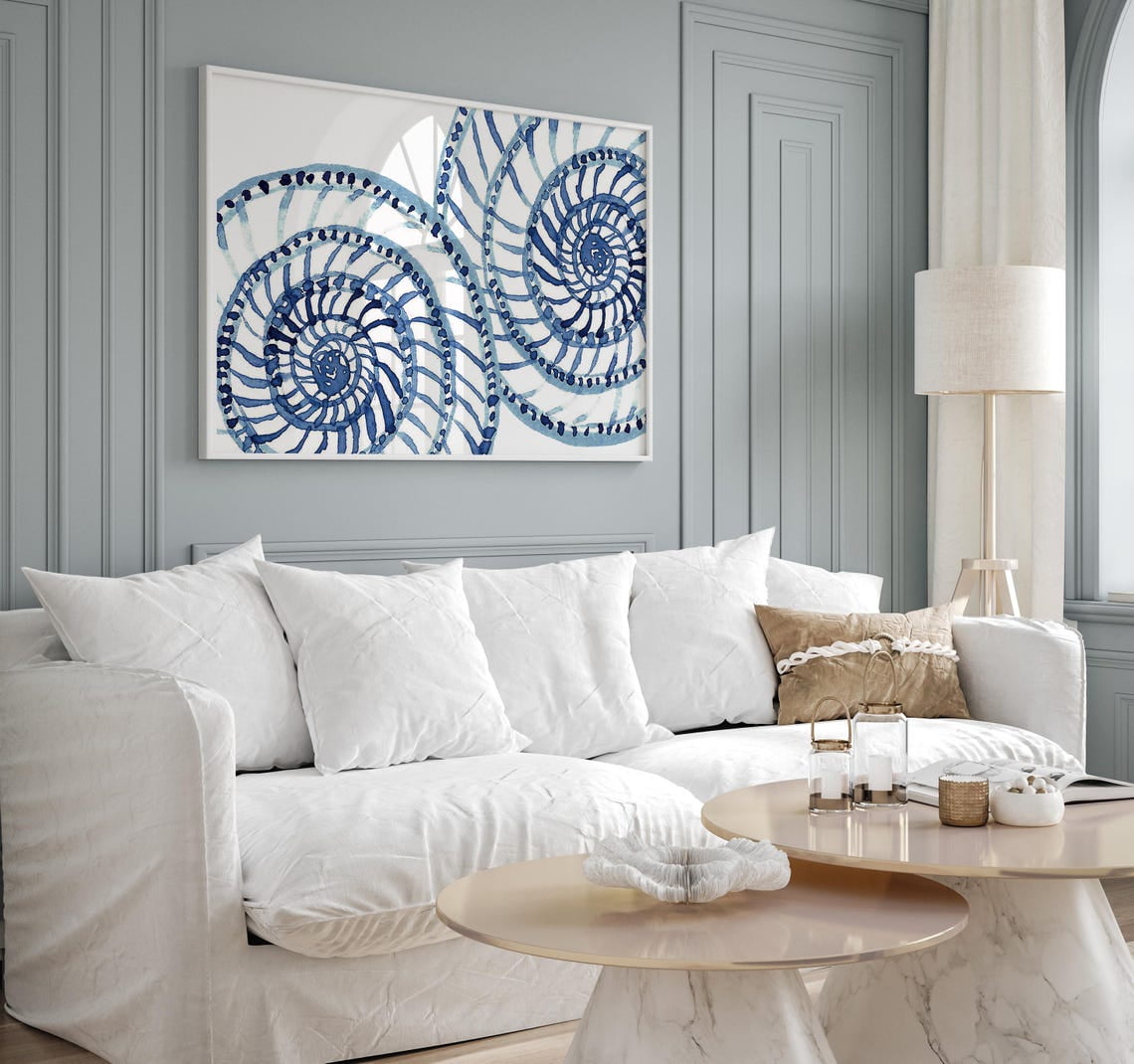Blue Sea Shell Abstract Art Print Poster Coastal Beach House Decor ...