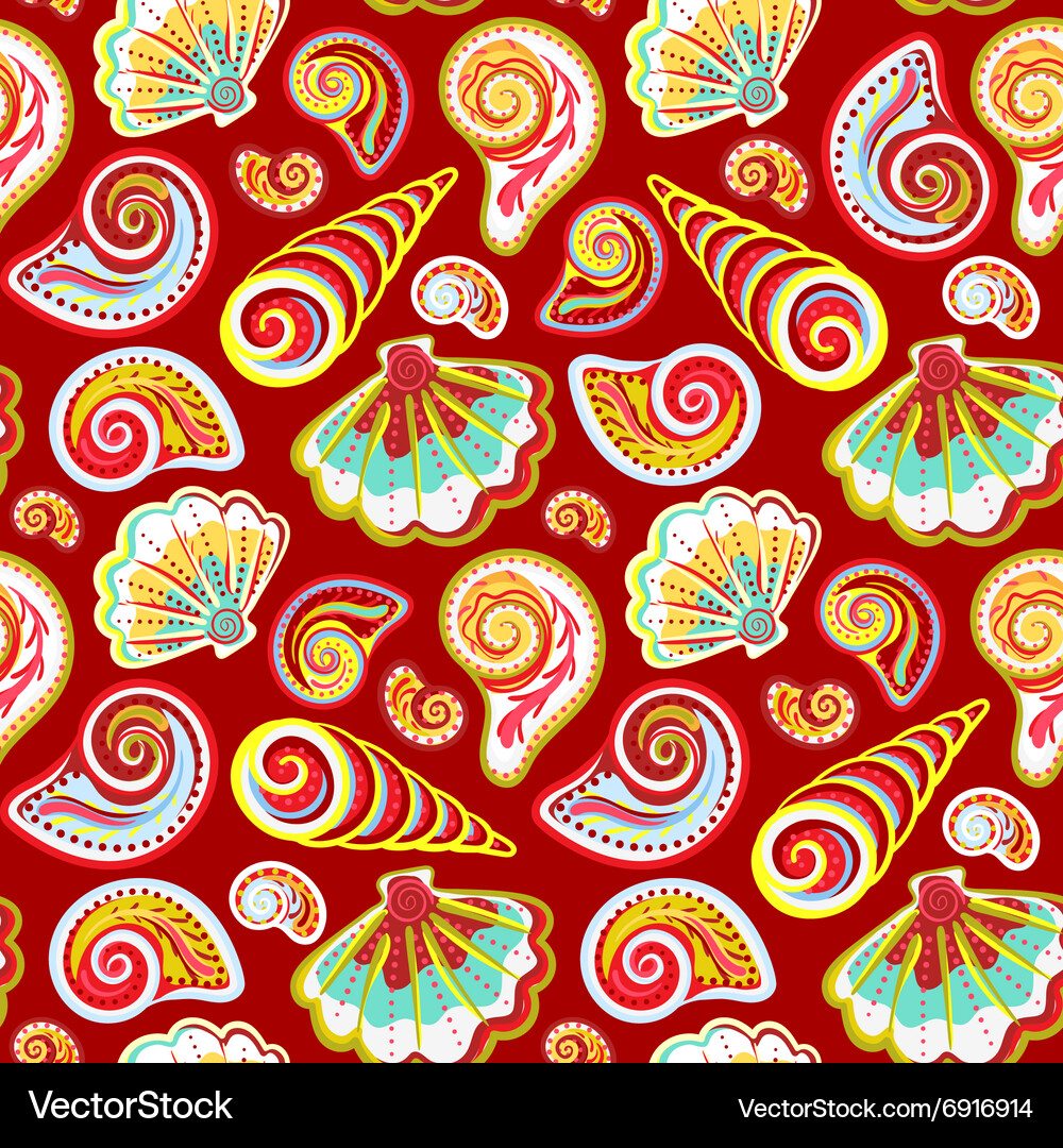 Vector seamless pattern from colorful seashell on white background ...