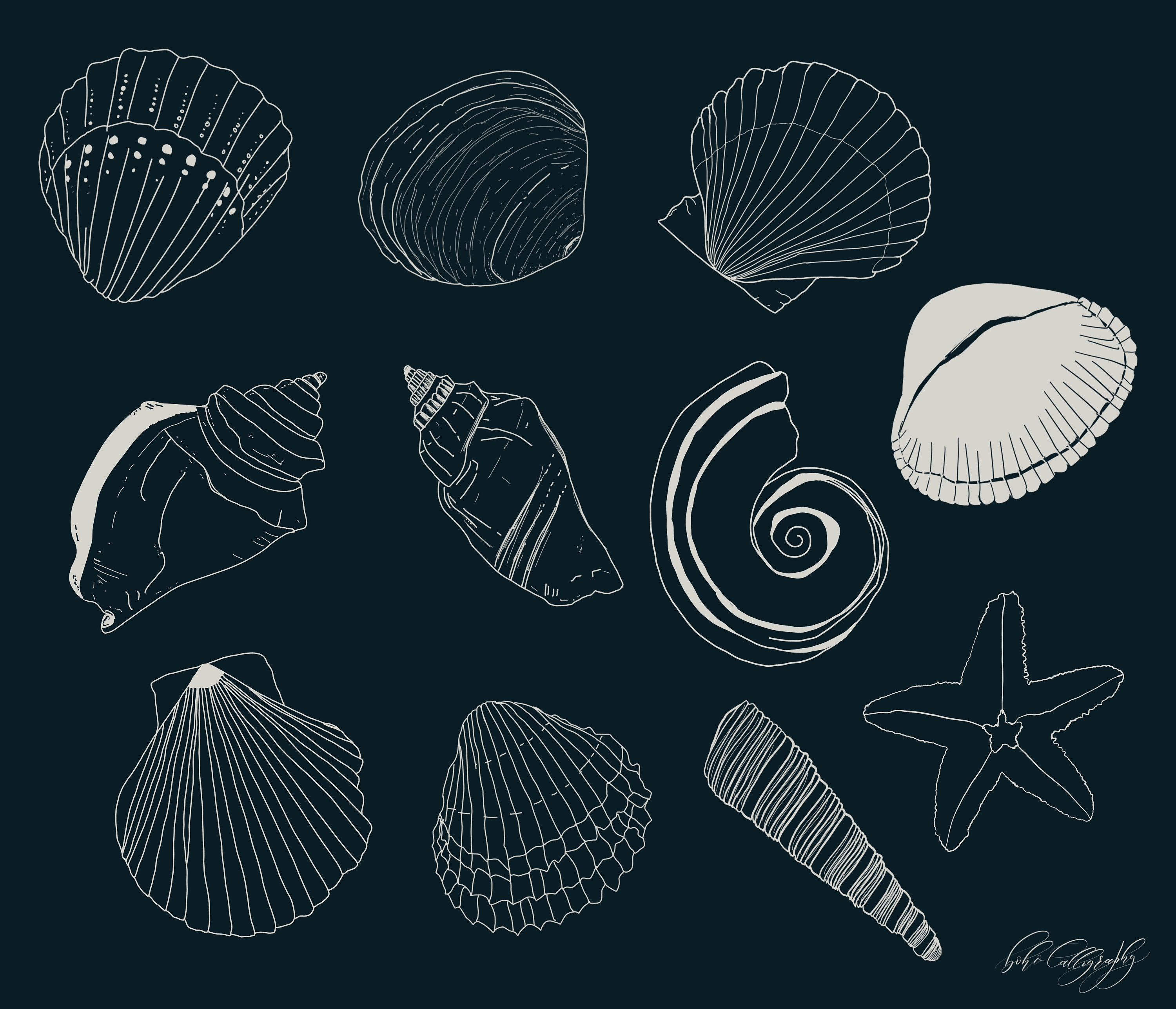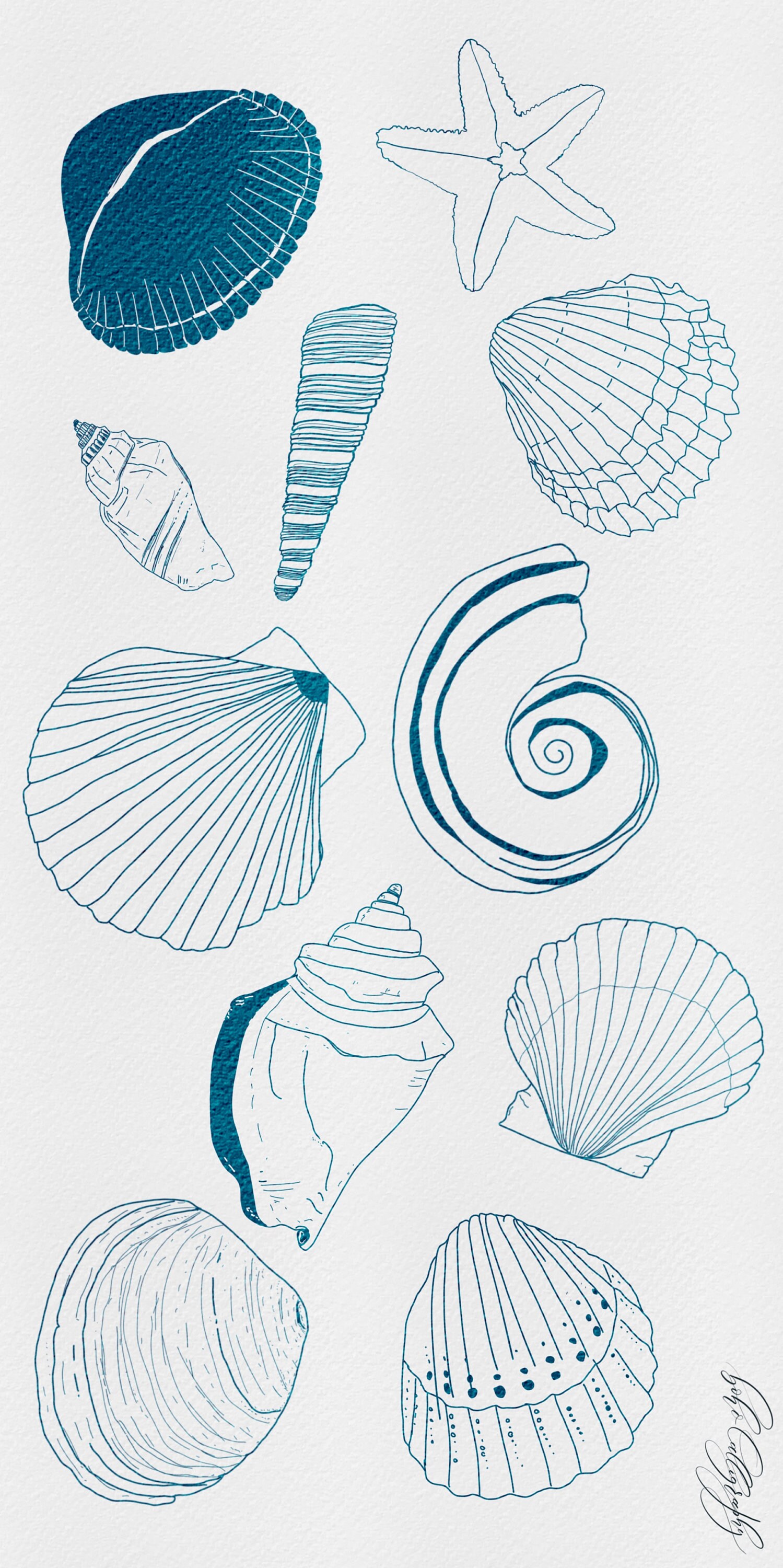 Sea Shells Line Drawing Procreate Stamps | Minimalist Sea Shells Clip ...