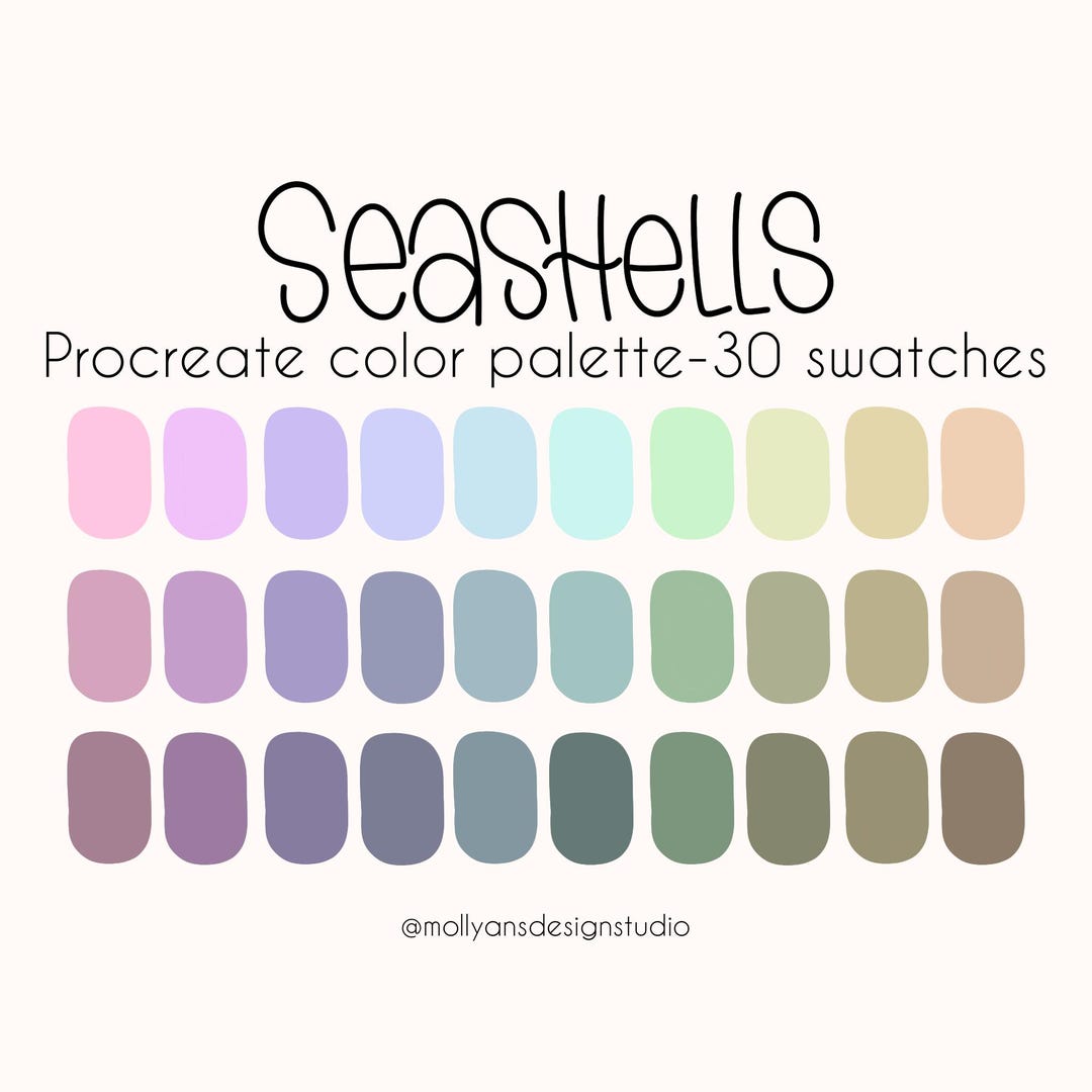Seashells Procreate Color Palette 30 Swatches Muted Pastels - Etsy