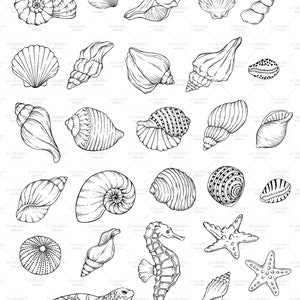 Seashell Stamps for Procreate: 50 Sea Life Nautical Line Art Brushes ...