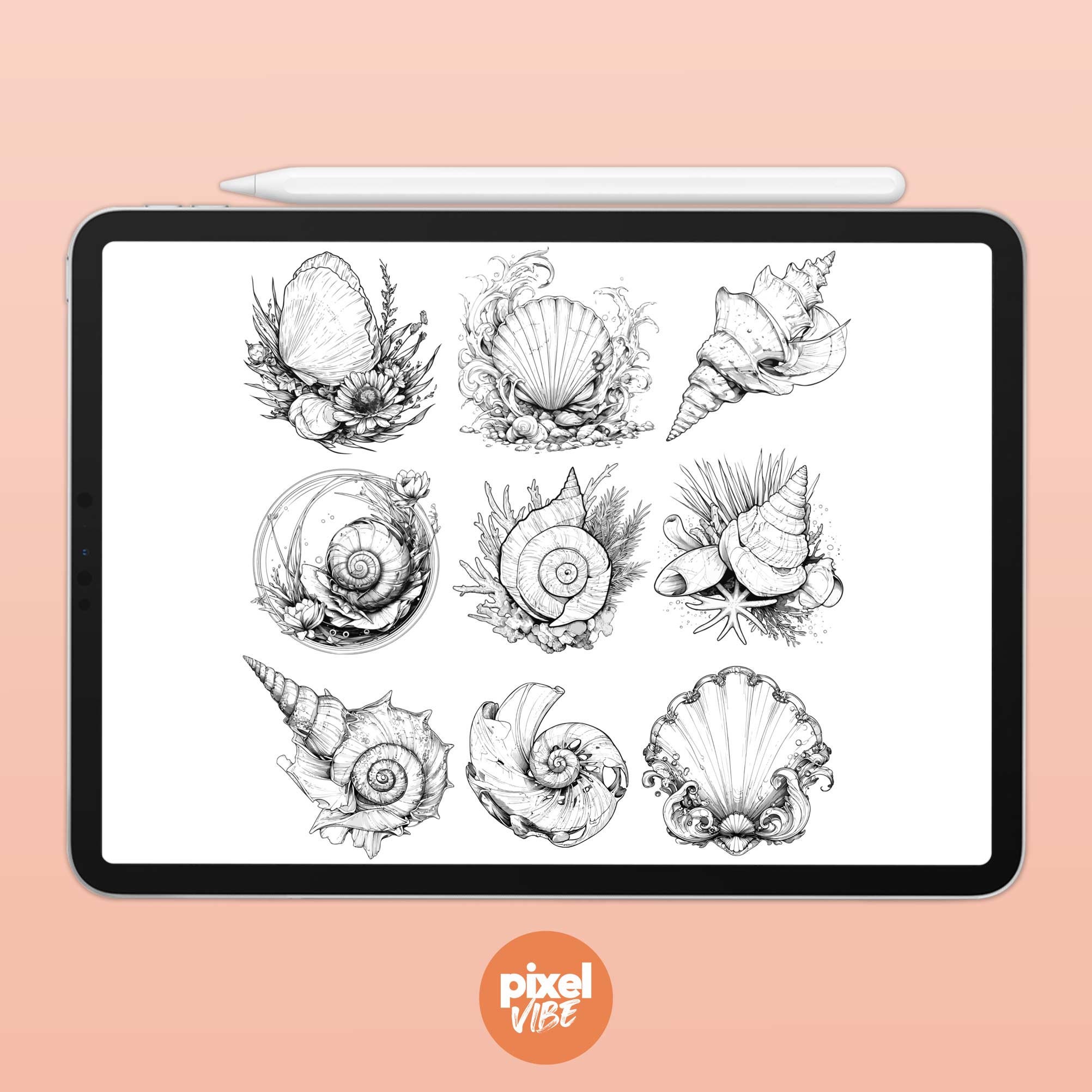 Shells Procreate Stamps | Procreate Brushes | Procreate Stamps | Tattoo ...