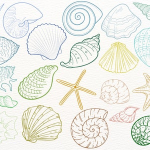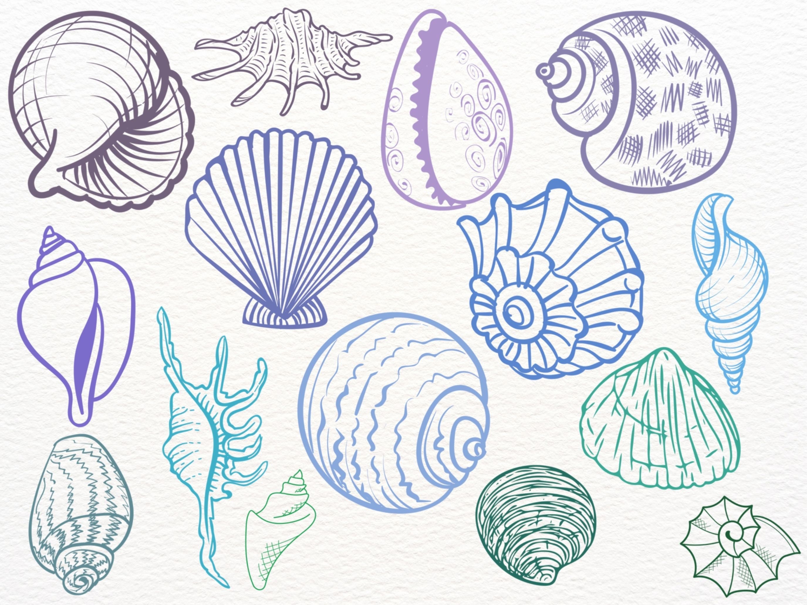 25 Stunning Line Art Seashells! PNG Clipart in 2025 | Procreate brushes ...