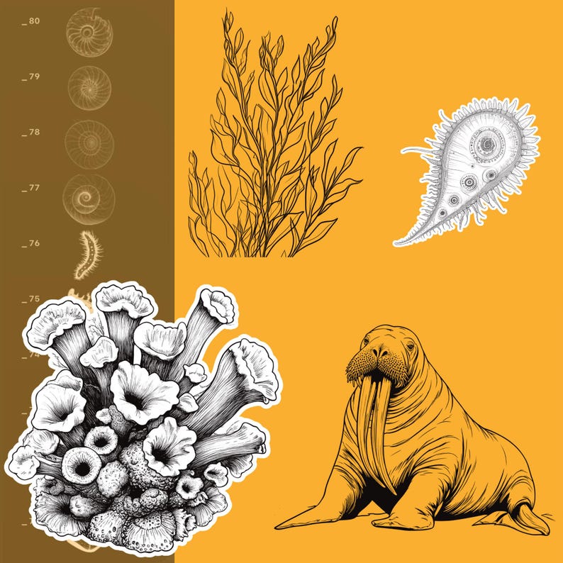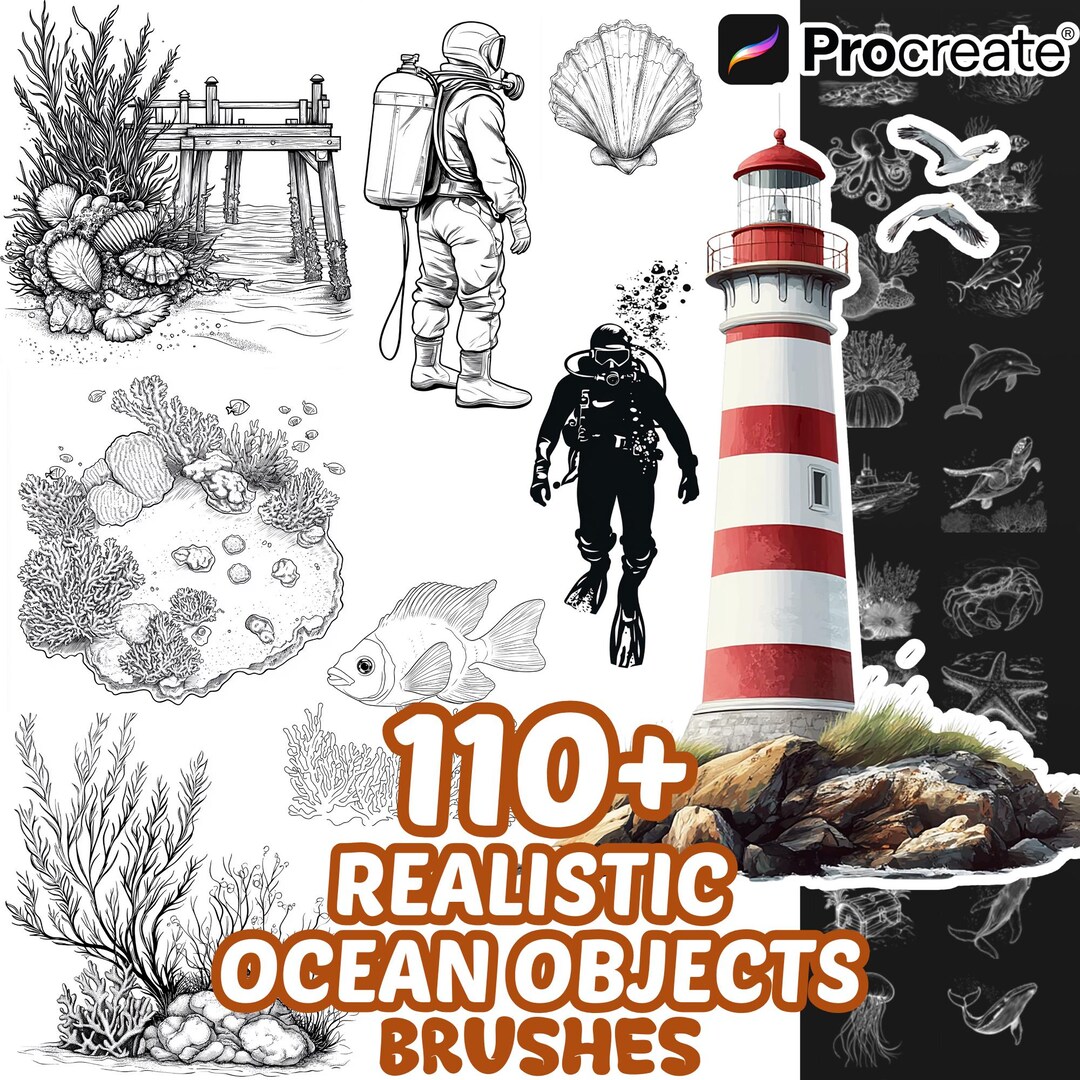 250+ Sea Creatures Procreate Brushes, Ocean Animals, Sea Plants, Fish ...