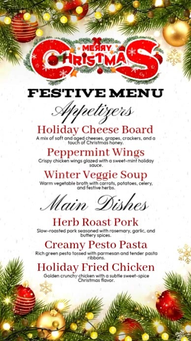 Elegant Festive Holiday Seasonal Menu Template | PosterMyWall