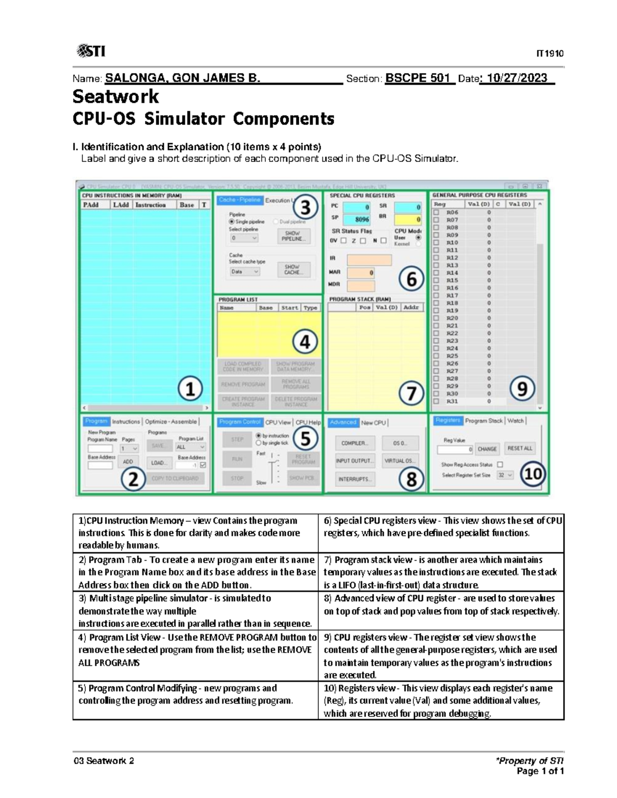BSCPE 501 - 03 Seatwork 2: CPU-OS Simulator Components Analysis - Studocu