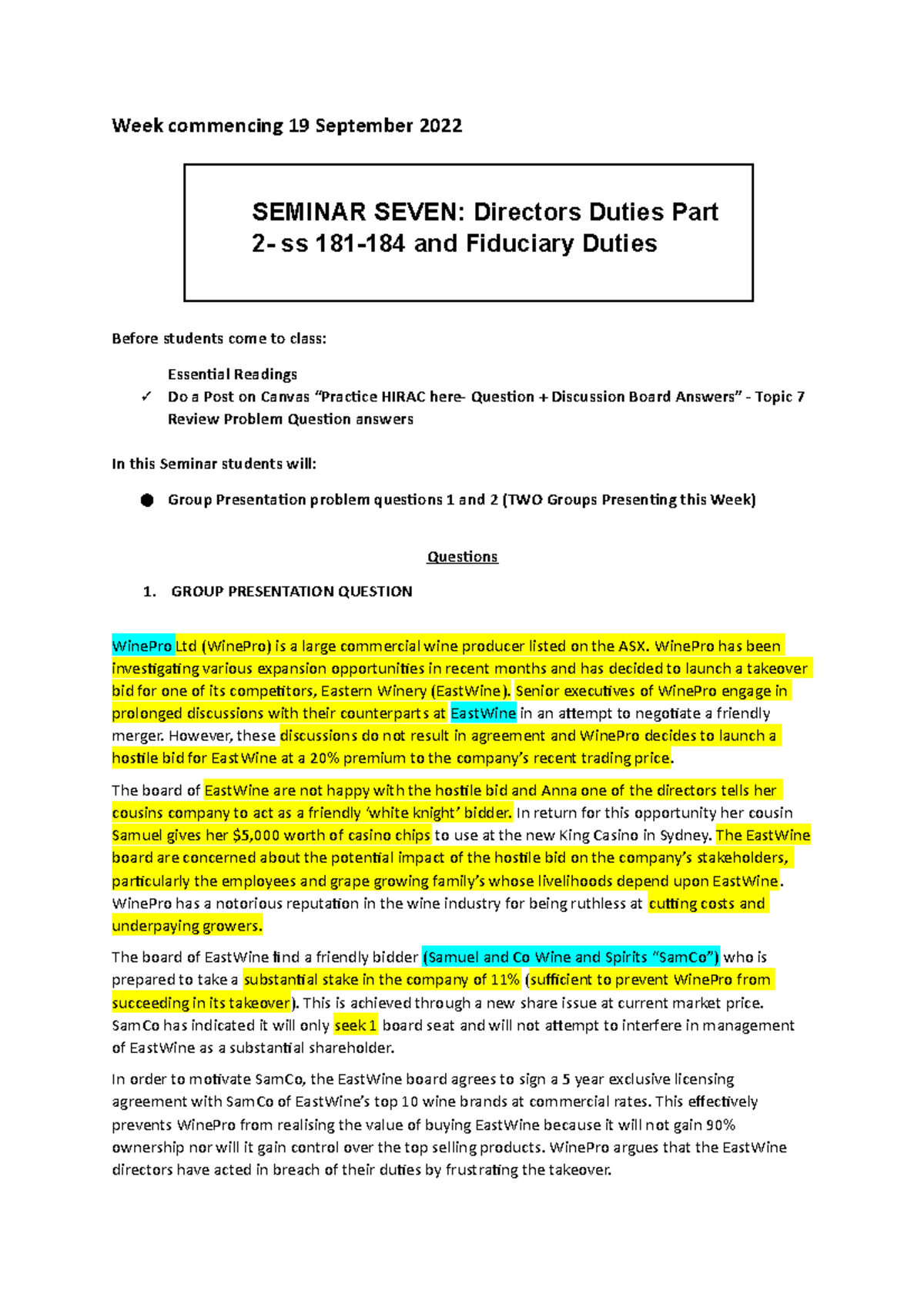 Week 7 Seminar: Directors' Duties - Group Presentations Analysis - Studocu