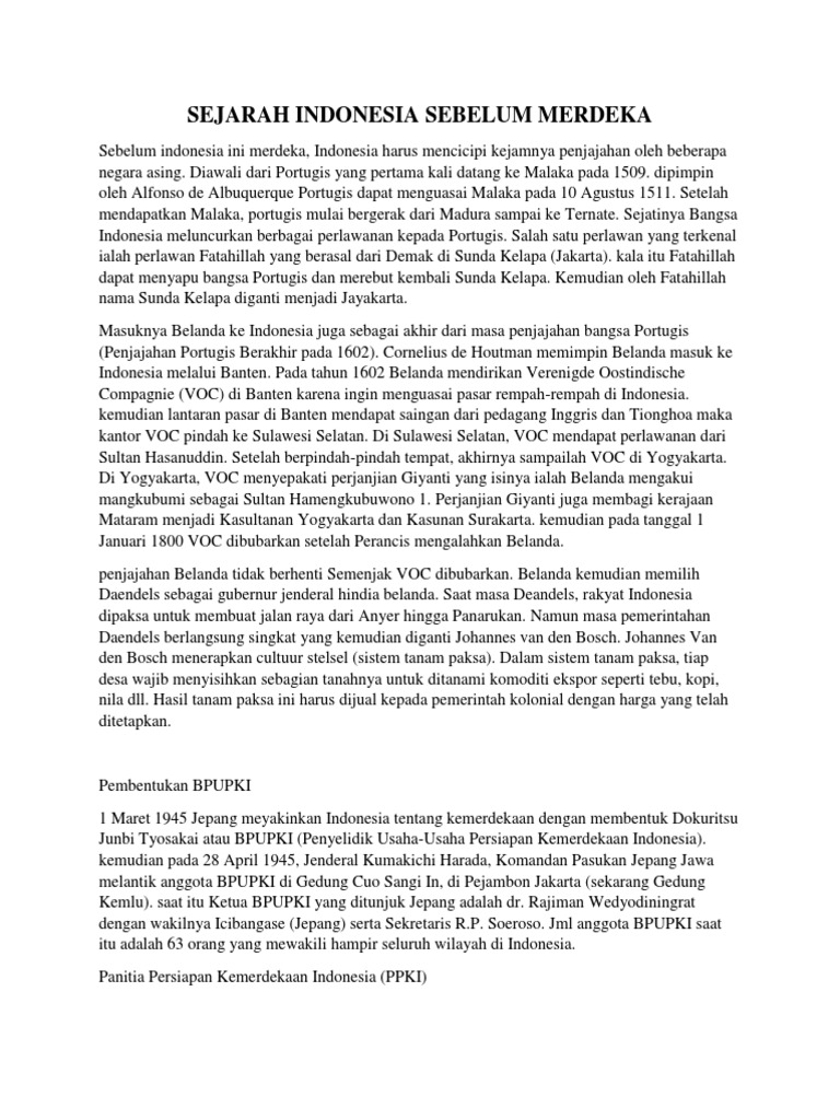Sejarah Indonesia Sebelum Merdeka Secara Singkat Dan Jelas | PDF
